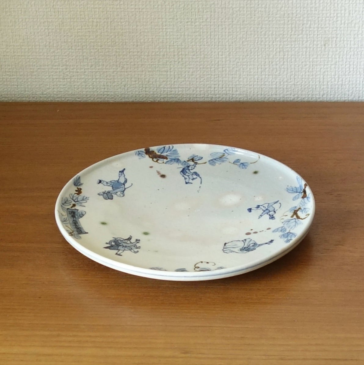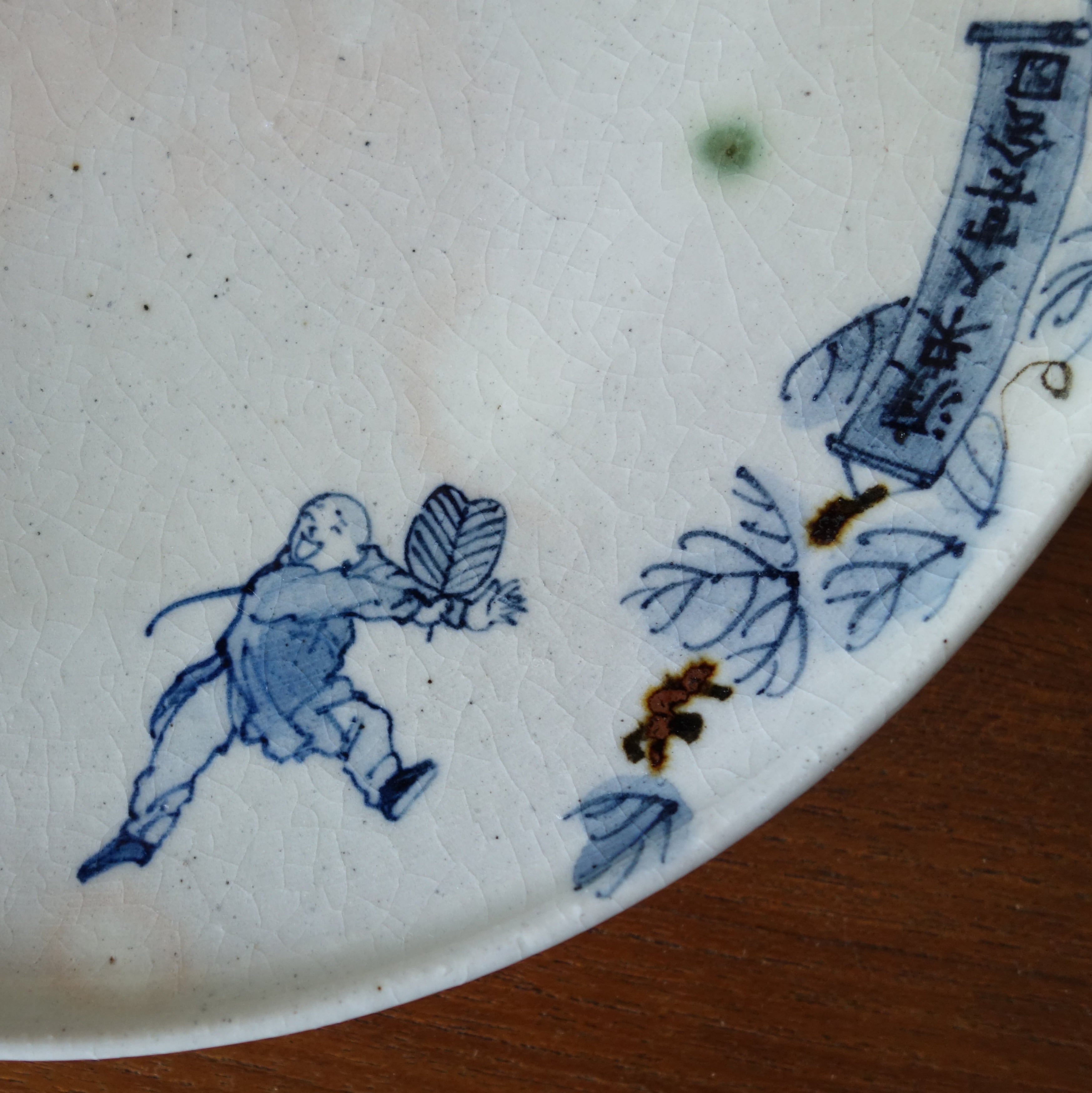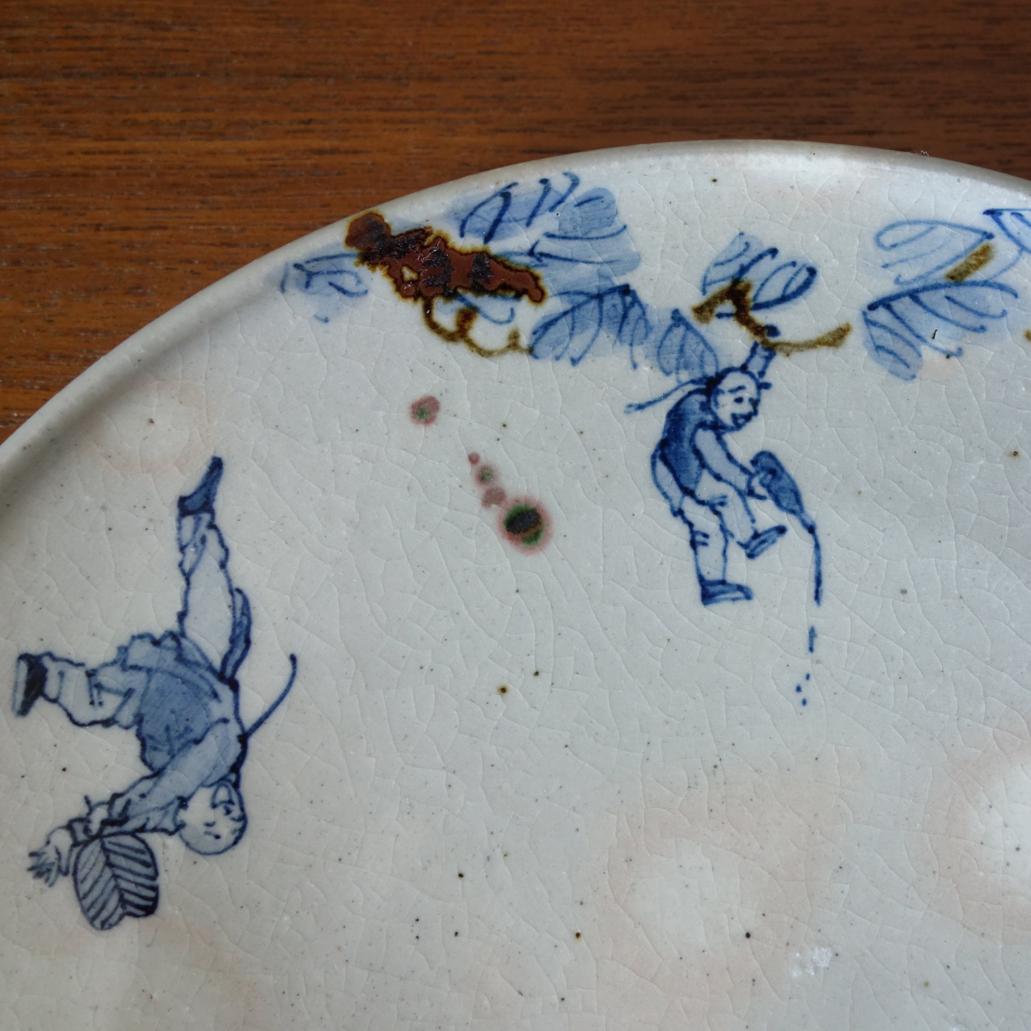 渡来人が楽しく宴会する様を染付けで描きました。