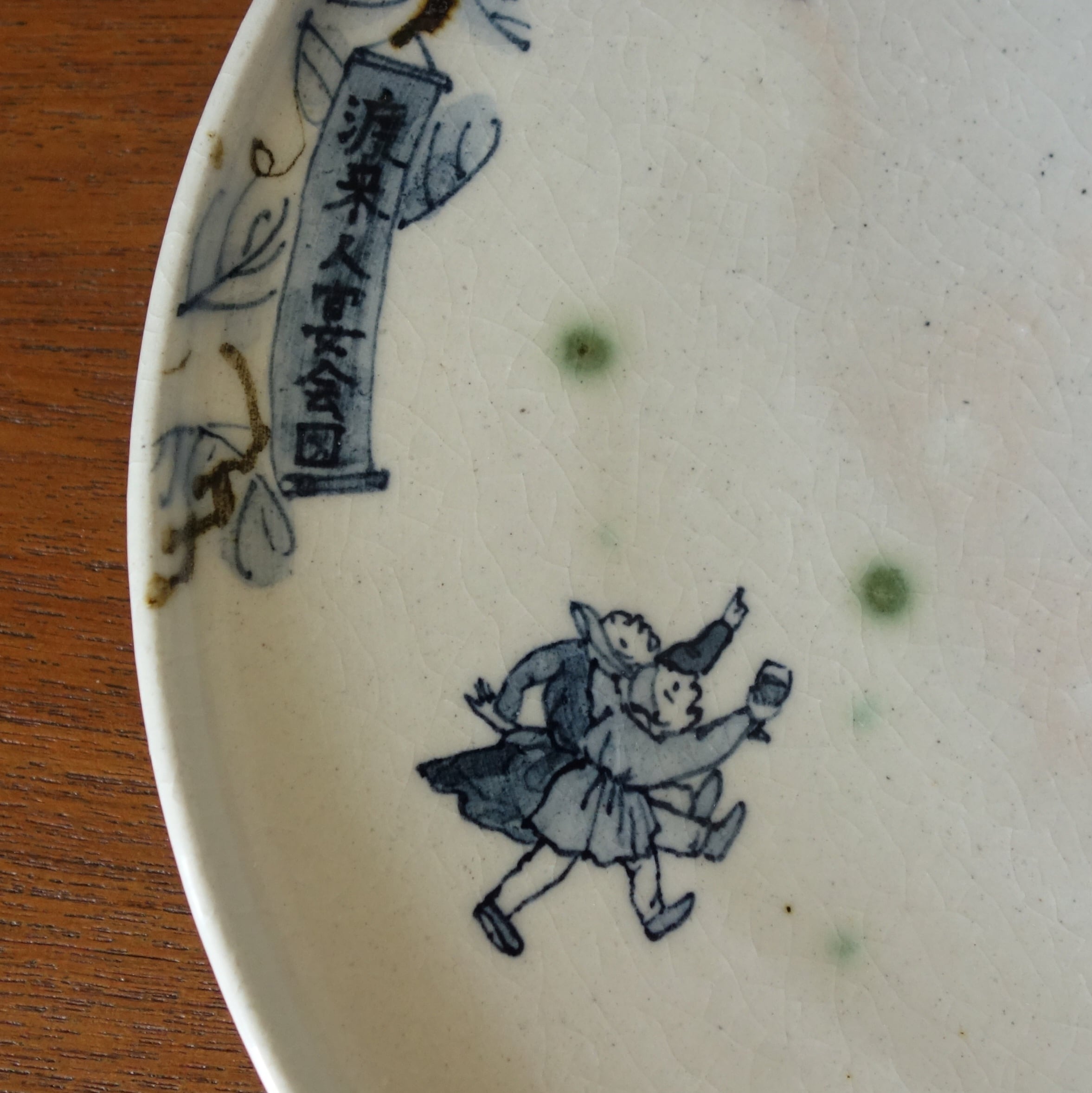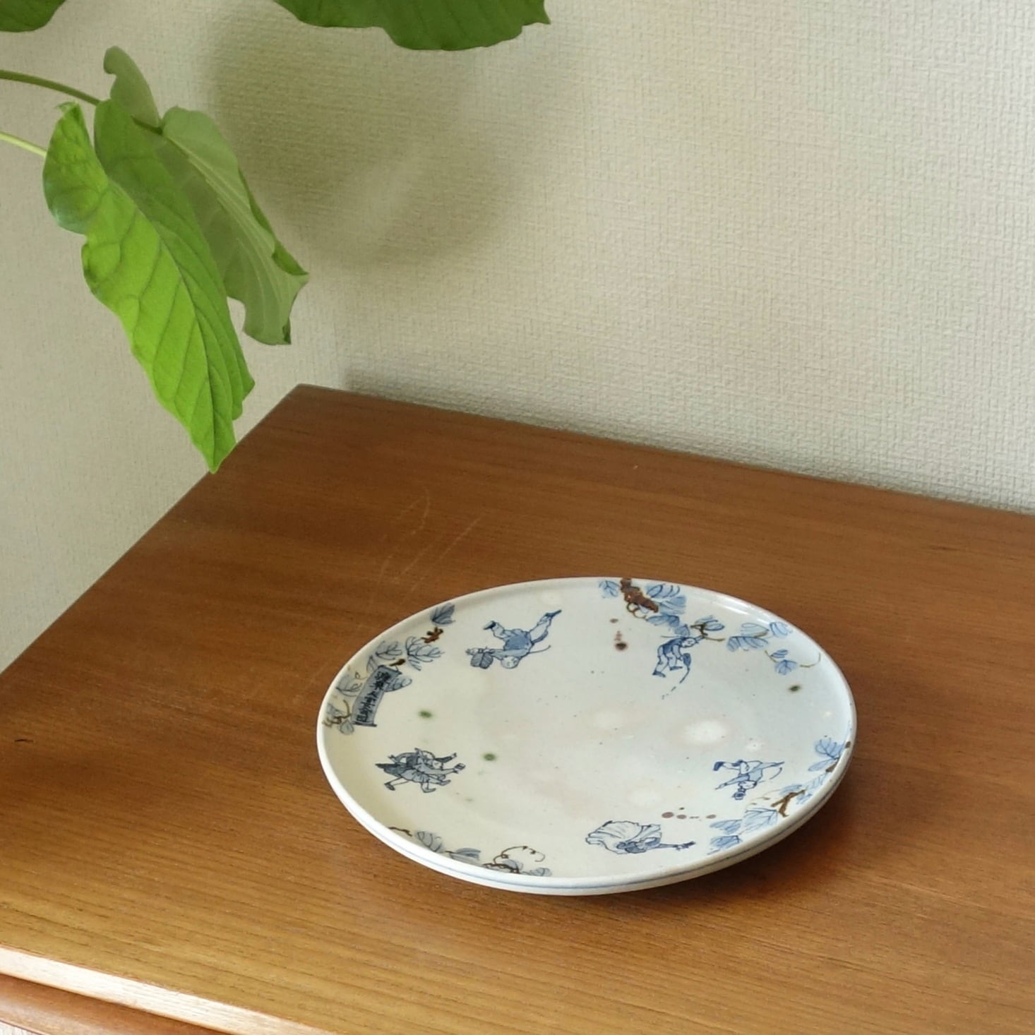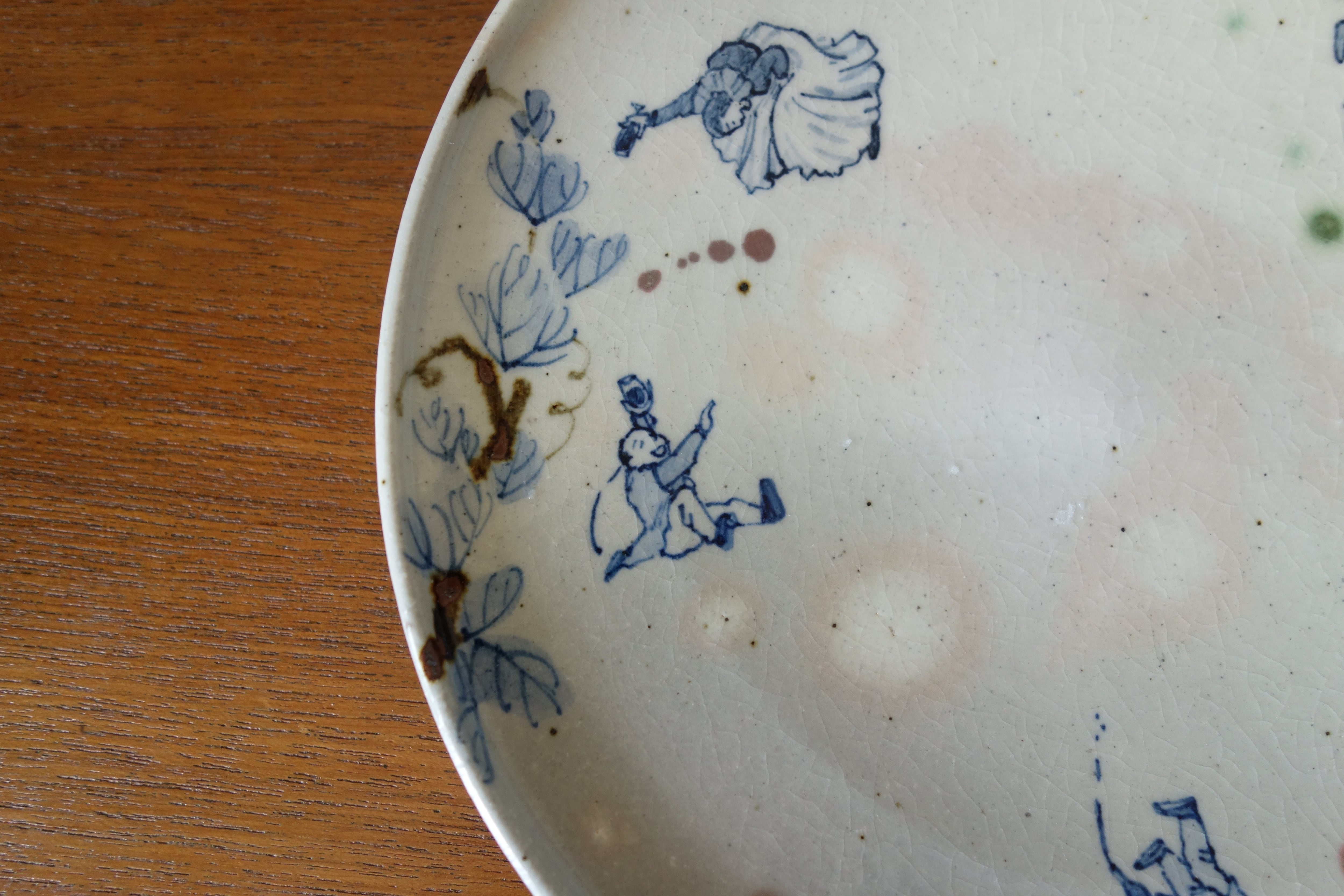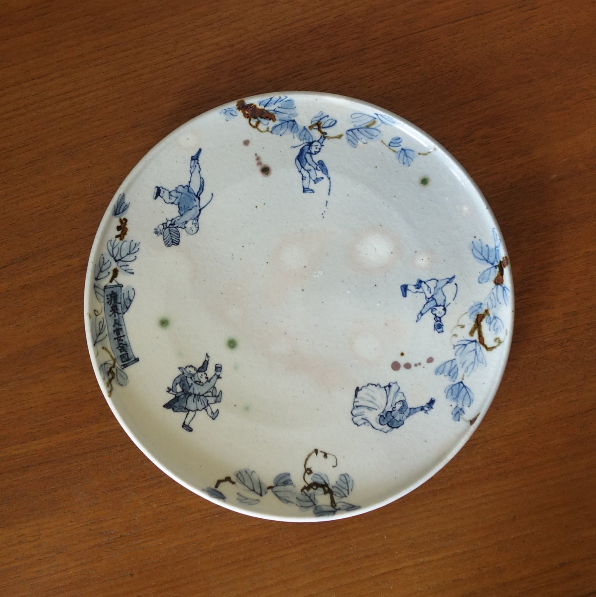 渡来人が楽しく宴会する様を染付けで描きました。